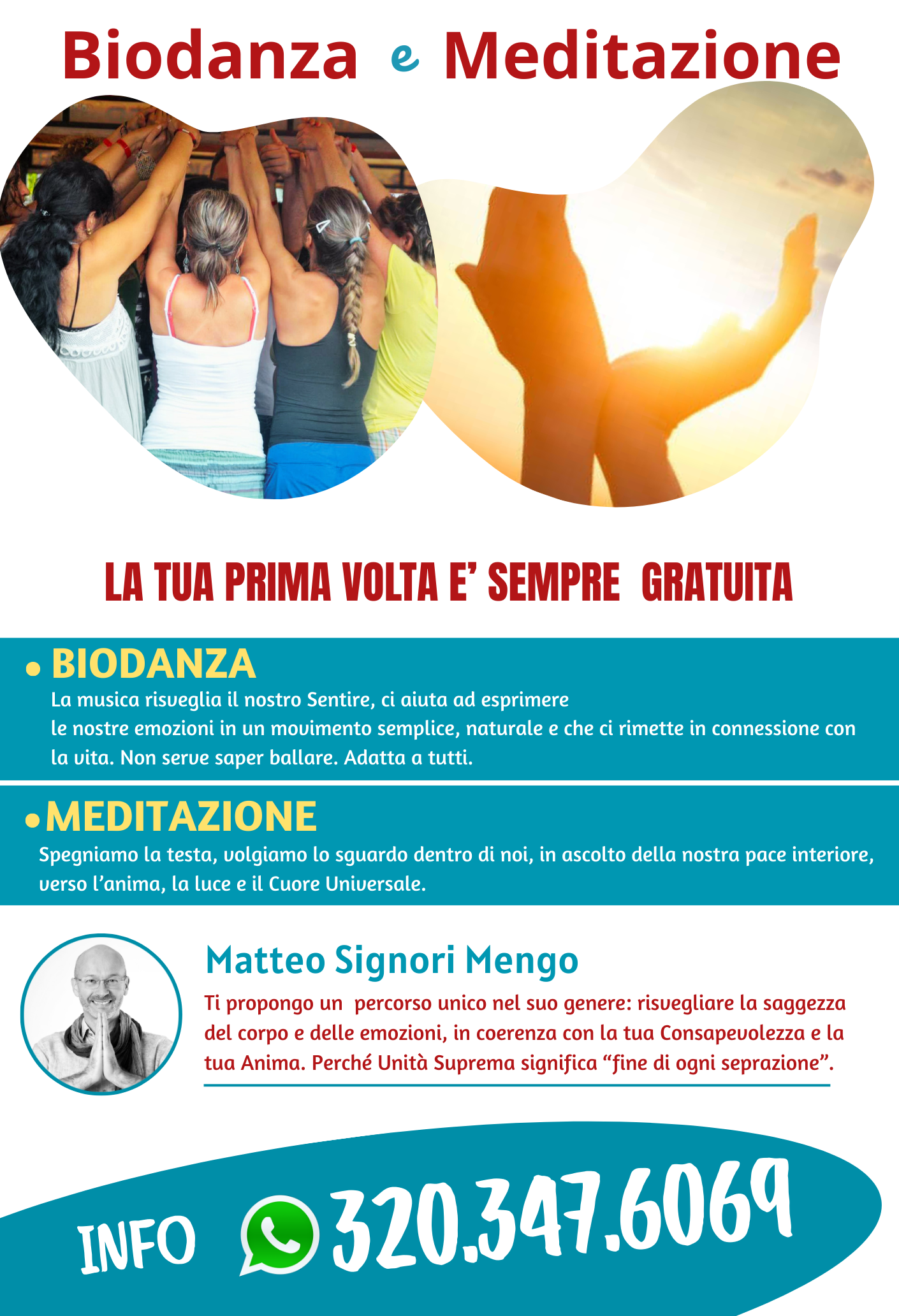 Puoi richiedere informazioni specifiche all'organizzatore del corso: compila il form sottostante con le tue necessità, la mail arriverà direttamente all'operatore di Biodanza che organizza l'evento.