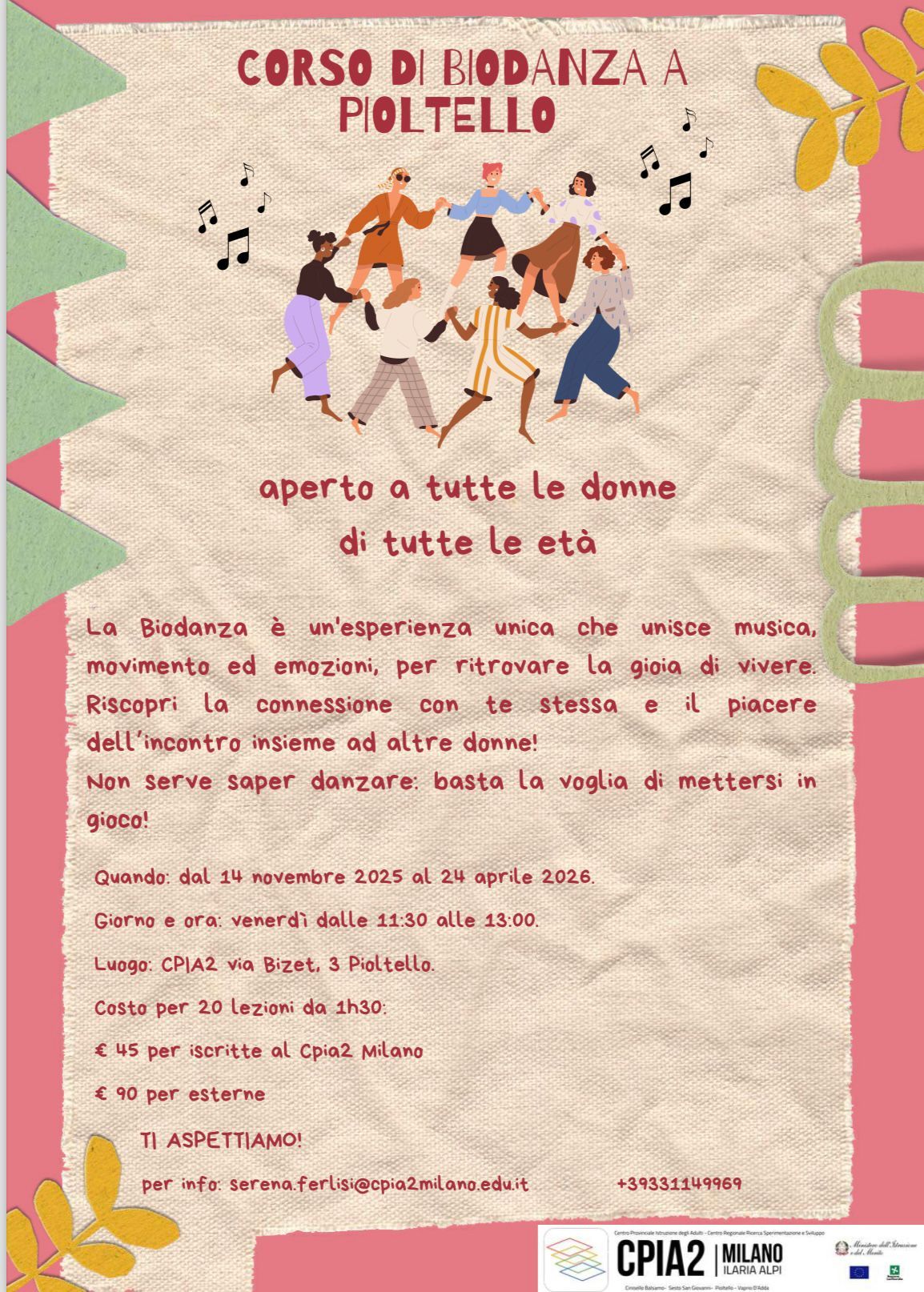 Un progetto per sole donne, finanziato dal CPIA di Pioltello (Centri Provinciali per l'Istruzione degli Adulti) e ha quindi un costo estremamente vantaggioso.