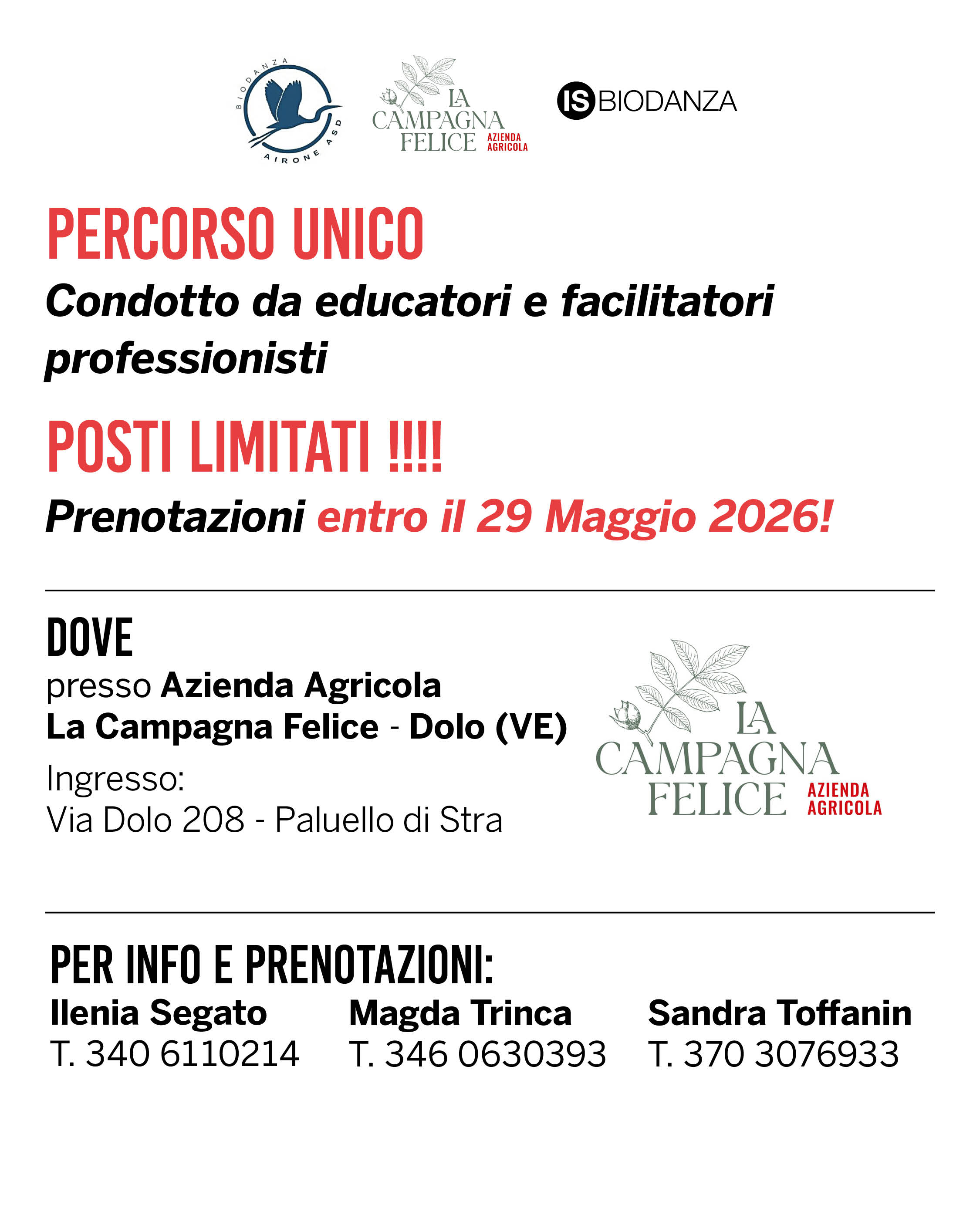 Dal 8 al 27 giugno 2026, nella cornice dellâAzienda Agricola La Campagna Felice, vivremo un percorso unico fatto di emozioni, amicizie autentiche, avventure sotto le stelle e piccoli grandi passi verso consapevolezza, autonomia e gioia condivisa.