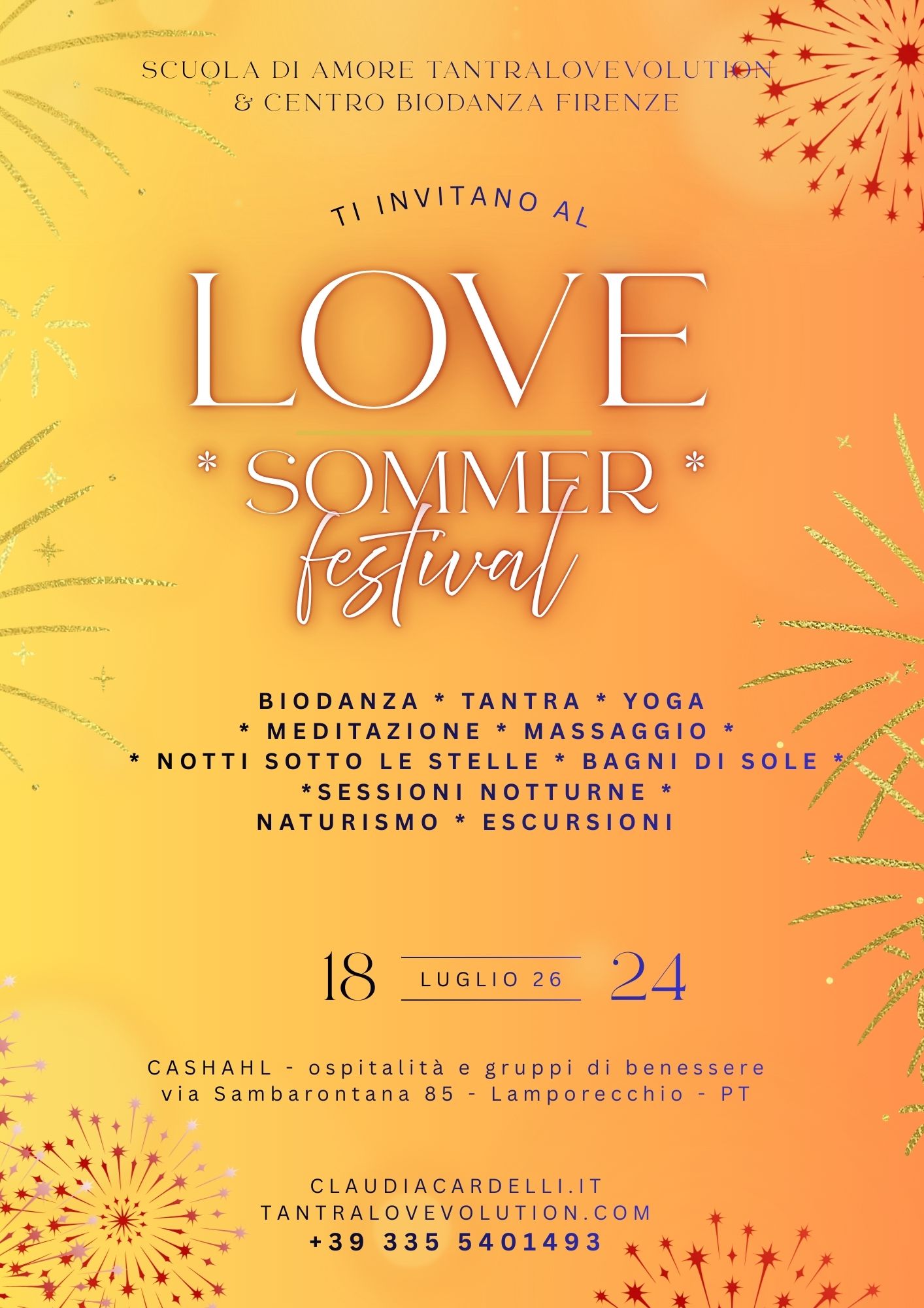 ![]() | LOVE SUMMER FESTIVAL - Estivo con Biodanza e non solo.... Un ritrovo per lavorare insieme con amicizia e professionalità sul tema della Relazione e dell'Amore attraverso pratica di BIODANZA - Meditazione e yoga in coppia, creatività, Cerchi di massaggio, e... |